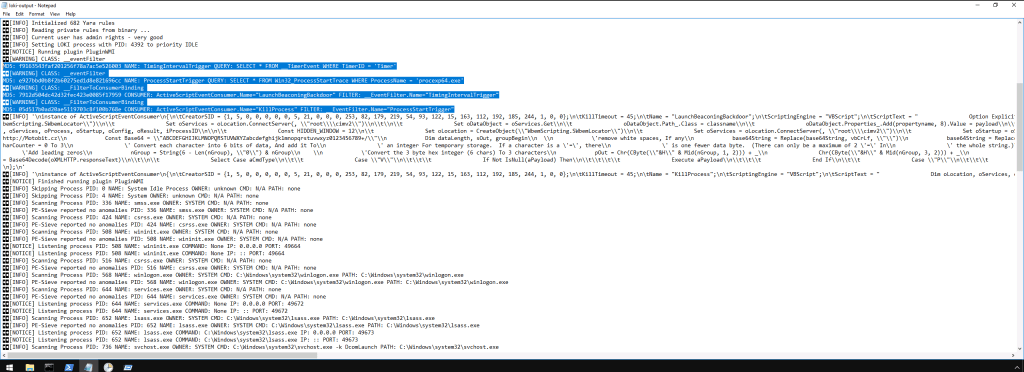 So let’s run LOKI: open command prompt, traverse to C:\Users\Administrator\Desktop\Tools\loki_0.33.0\loki, and enter: